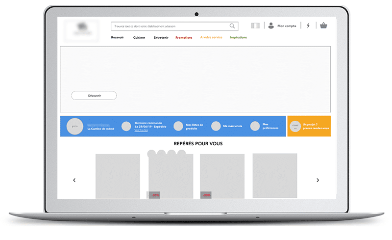 Ces accès permettent de consulter la dernière commande, les listes de produits créées, la mercuriale des prix négociés, les préférences et de prendre RDV avec son commercial.
